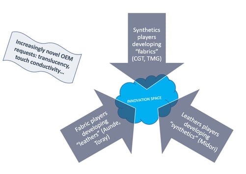 In summary, The ITB Group observes that all three players are highly interested in appropriating haptic properties from other categories, while at the same time their OEM and Tier customers are trying to find novel approaches to translucency and touch conductivity. The industry will continue to see decreases in leather, with gains achieved in synthetic seat surfaces.